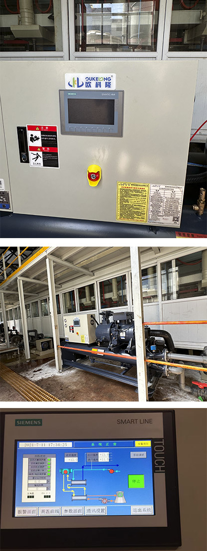 本案位于湖北十堰國企二汽某五金件廠大型電鍍生產線配套的水冷螺桿式冷水機,二次購買案例。
