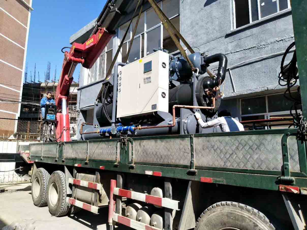 雙壓縮機雙制冷系統中央空調螺桿機裝載中